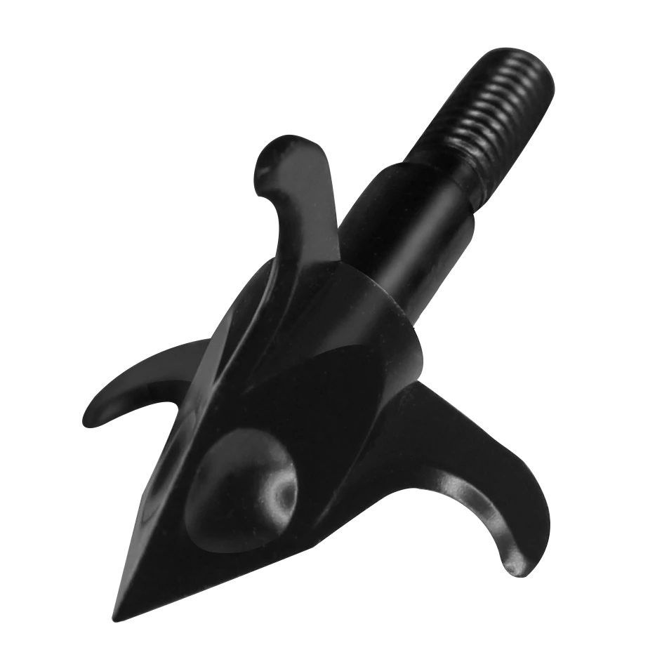 - Curved blades devastate game while preventing arrow from burying into the ground.